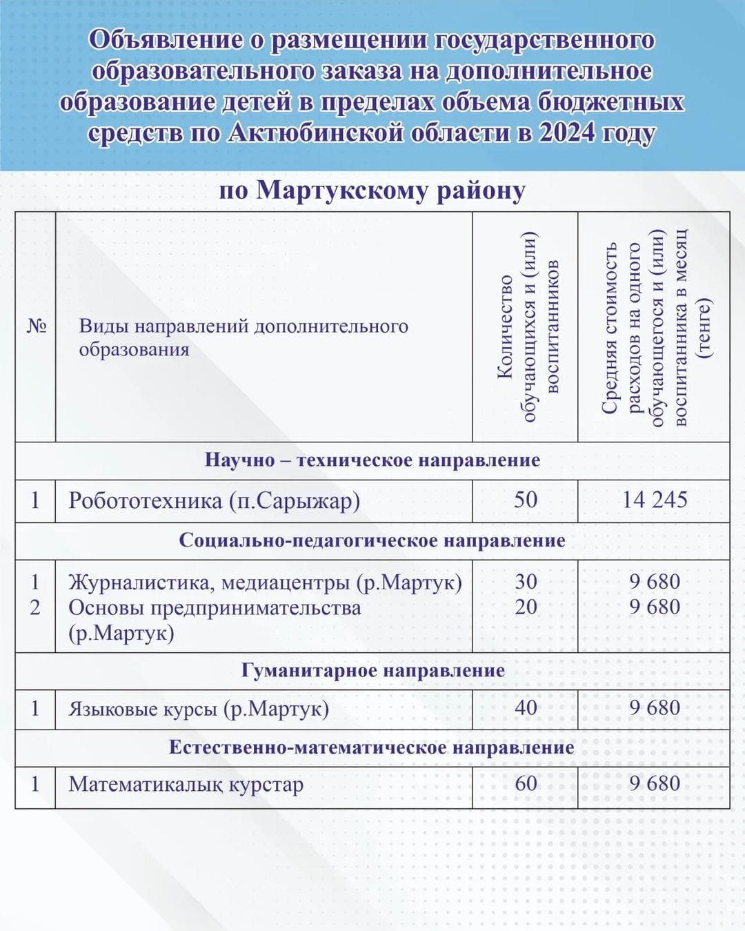 Мектепке дейінгі тәрбие мен оқытуға мемлекеттік білім беру тапсырысын орналастыру