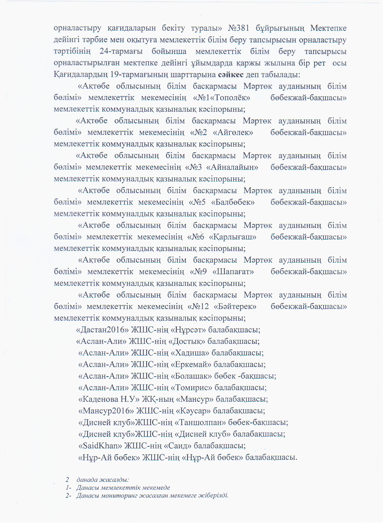 | 4 | Объявление для получения государственного образовательного заказа на дошкольную организацию в с.Жайсан. | |
